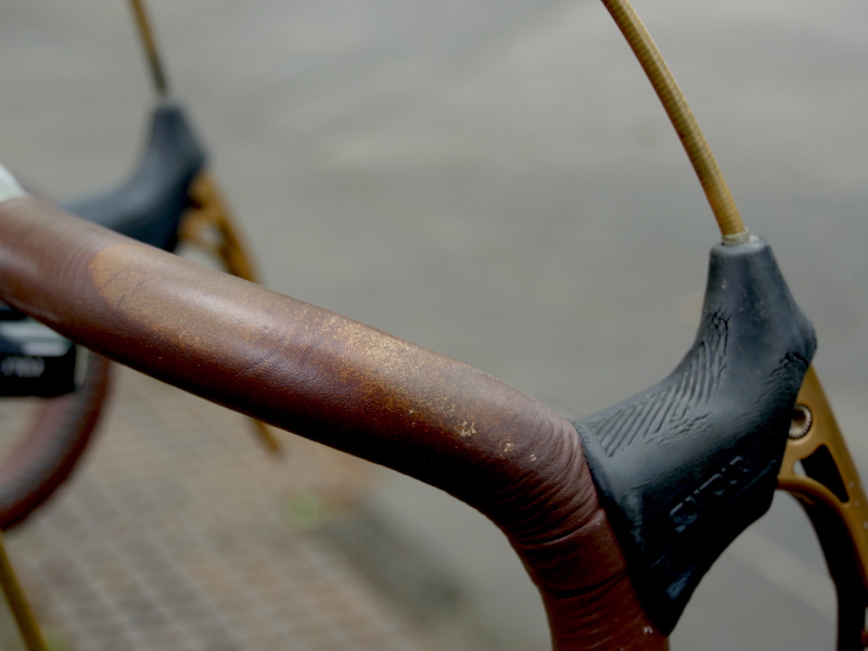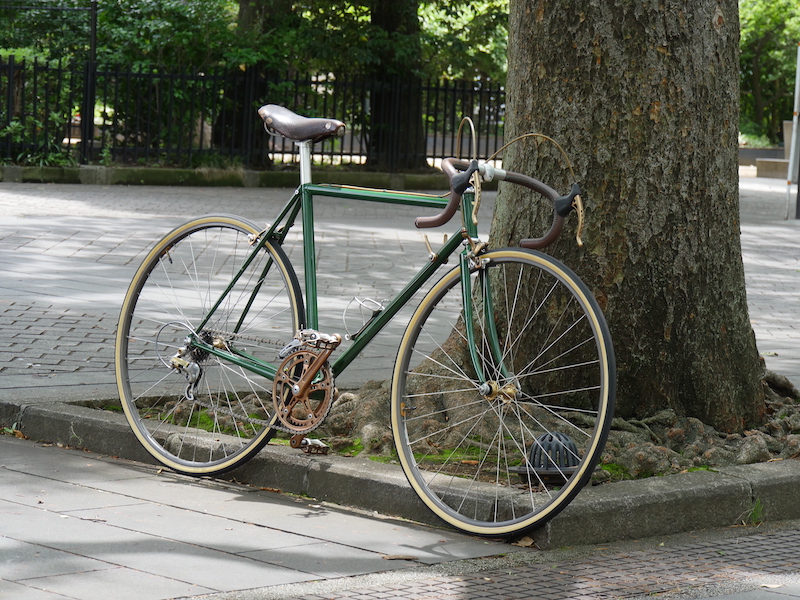 全部が組み上がった自転車は、DIC640に指定したグリーンのフレームに、革のサドル、革巻きのハンドル、その色に合わせたような銅メッキのパーツで揃えた、自分のこだわり通りの自転車に仕立てあがった。