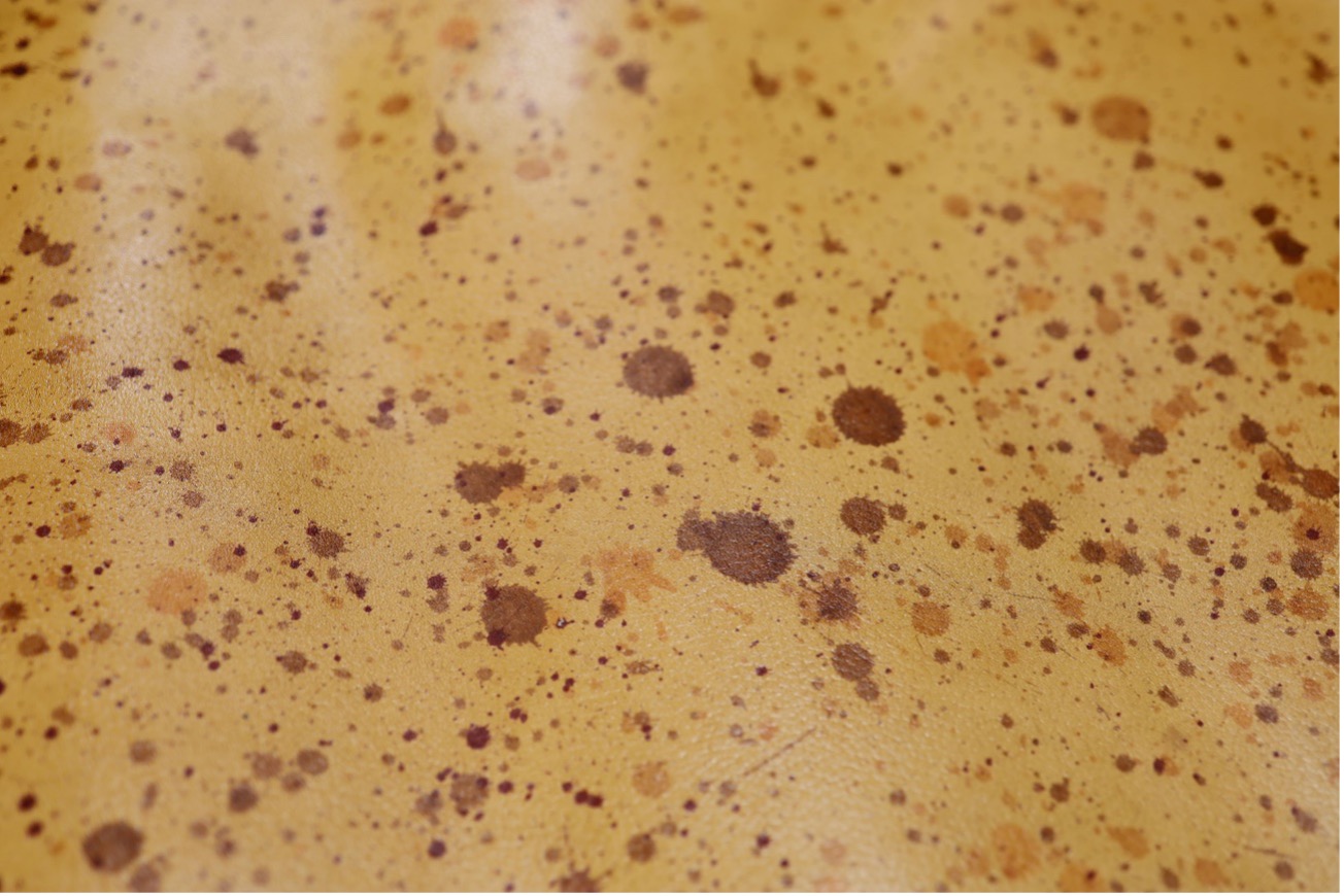 本来マイナス要素である「虫食い」を人工的に作り、社内在庫として存在する革も生かしながらデザイン性のある革が作れるのではないか?と考えました。