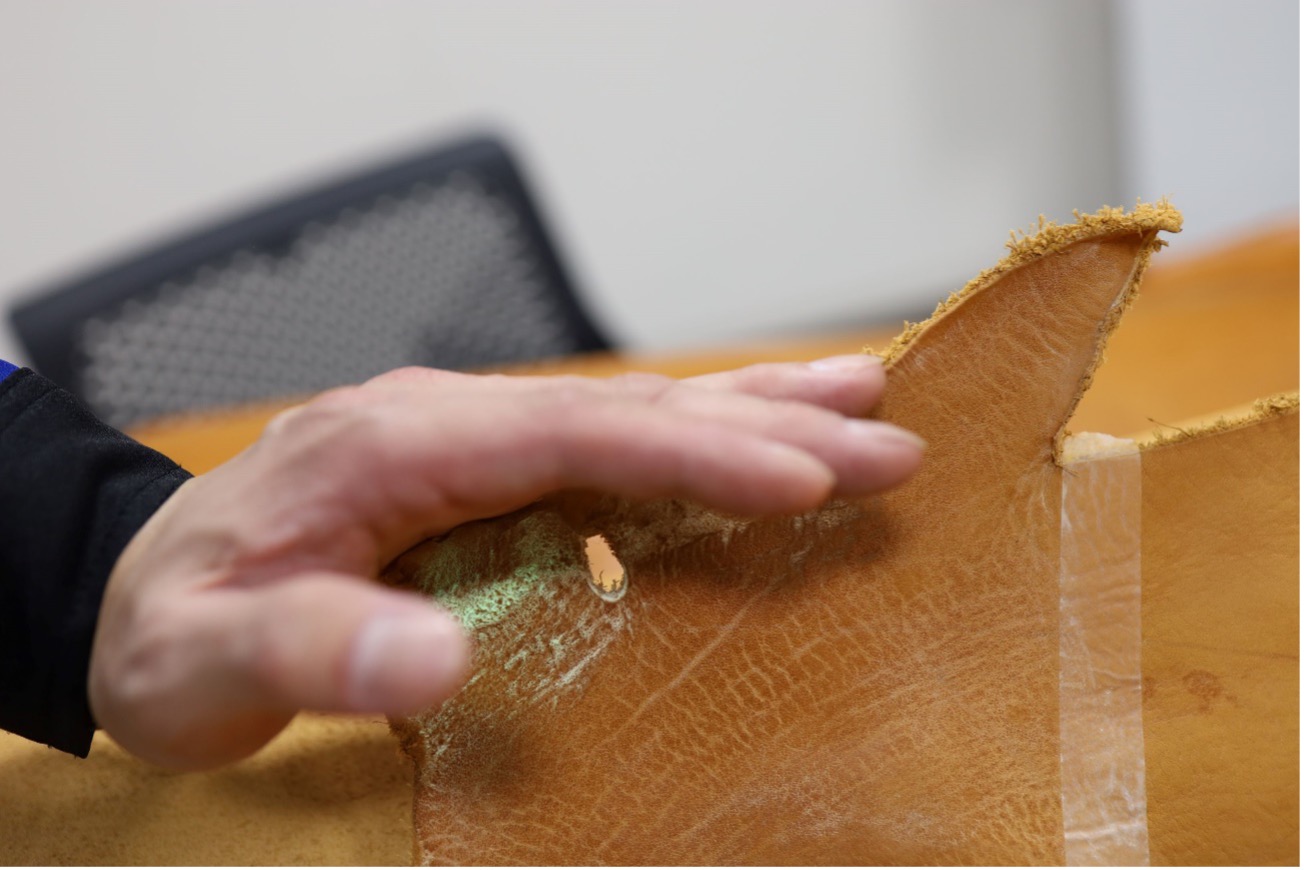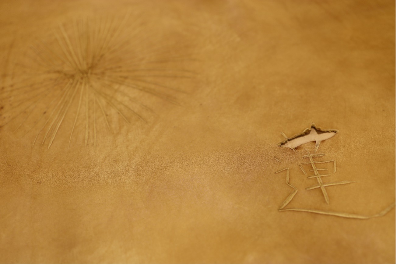 前回イタリアの「プエブロ」革に近づけ!をご紹介しましたが、こちらのチームももうひとつ、別の取り組みを行っていました。それはメンバー鈴木蓮さんからの発案「生(原皮)の状態で傷をつけたらどうなるか?」というもの。