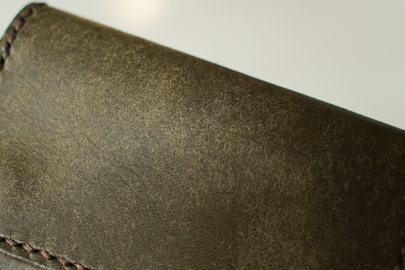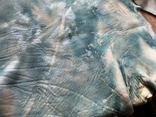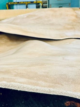 鞣した後加脂し、乾燥させた状態のヌメ革。