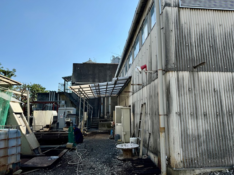 その上をカタカタと歩いていくと環境課が作業されている排水処理施設があります。