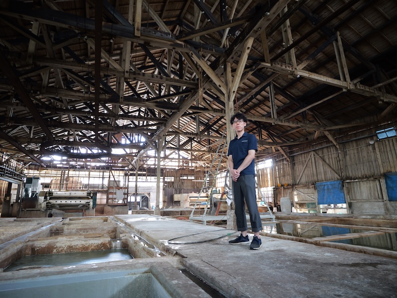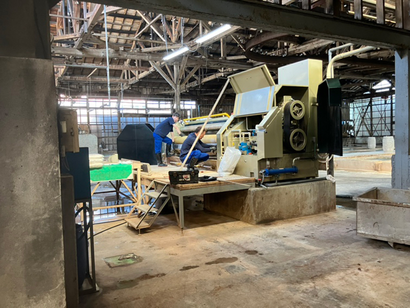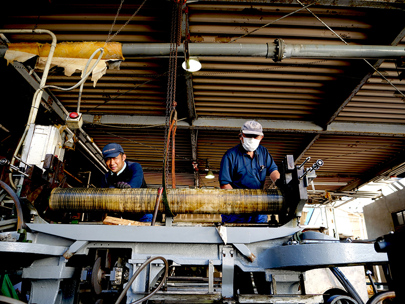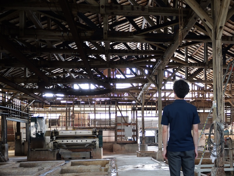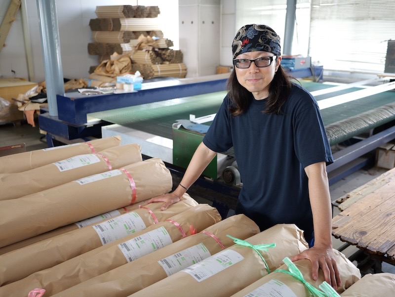 打合せの後はハシモト産業さんとYESさんの工房を見学させていただきました。YESさんの「漉く・継ぐ」という「スキツギシリーズ」のシートは、ここハシモト産業さんで制作されているのです。