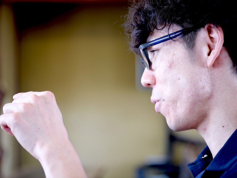 岡さんからは作業工程はもちろん、普段使っている自作の工具を見せてもらい、自身で工夫されていることやこだわりなど、色々なお話を聞くことができました。