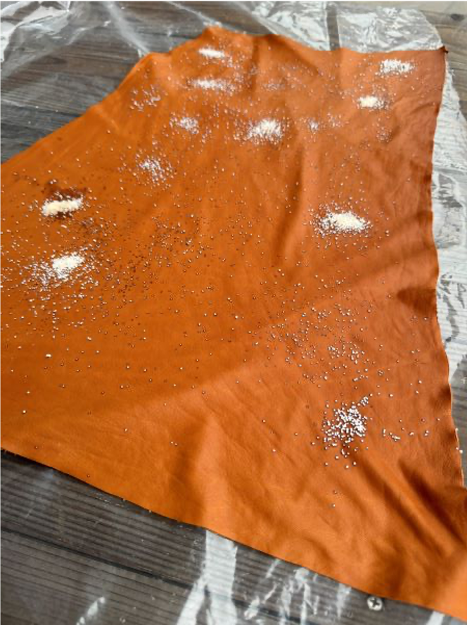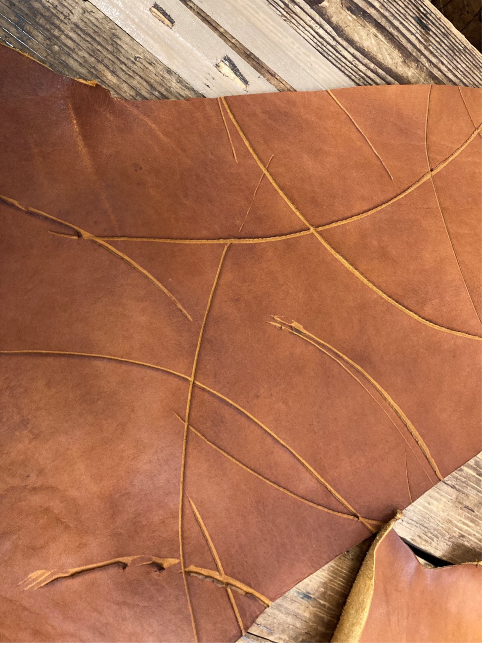 前回イタリアの「プエブロ」革に近づけ!をご紹介しましたが、こちらのチームももうひとつ、別の取り組みを行っていました。それはメンバー鈴木蓮さんからの発案「生(原皮)の状態で傷をつけたらどうなるか?」というもの。
