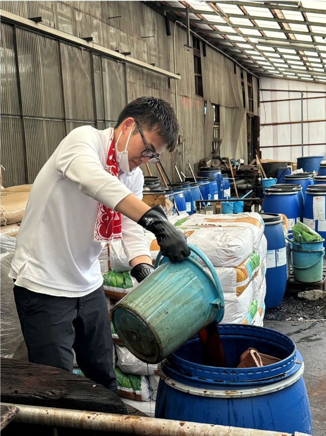 前回は、ミモザ100%で鞣した革を取り出すところまでを紹介しましたが、今回はその続きと、もうひとつの取り組みを紹介します。