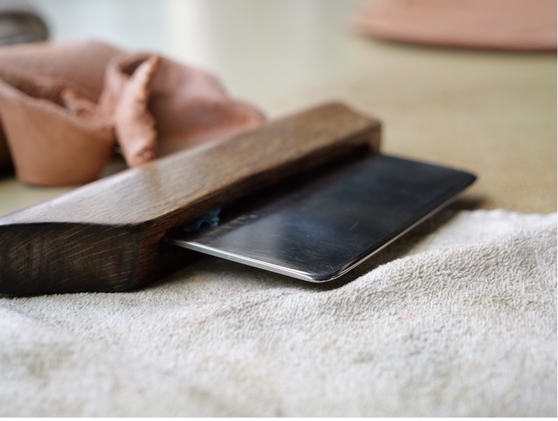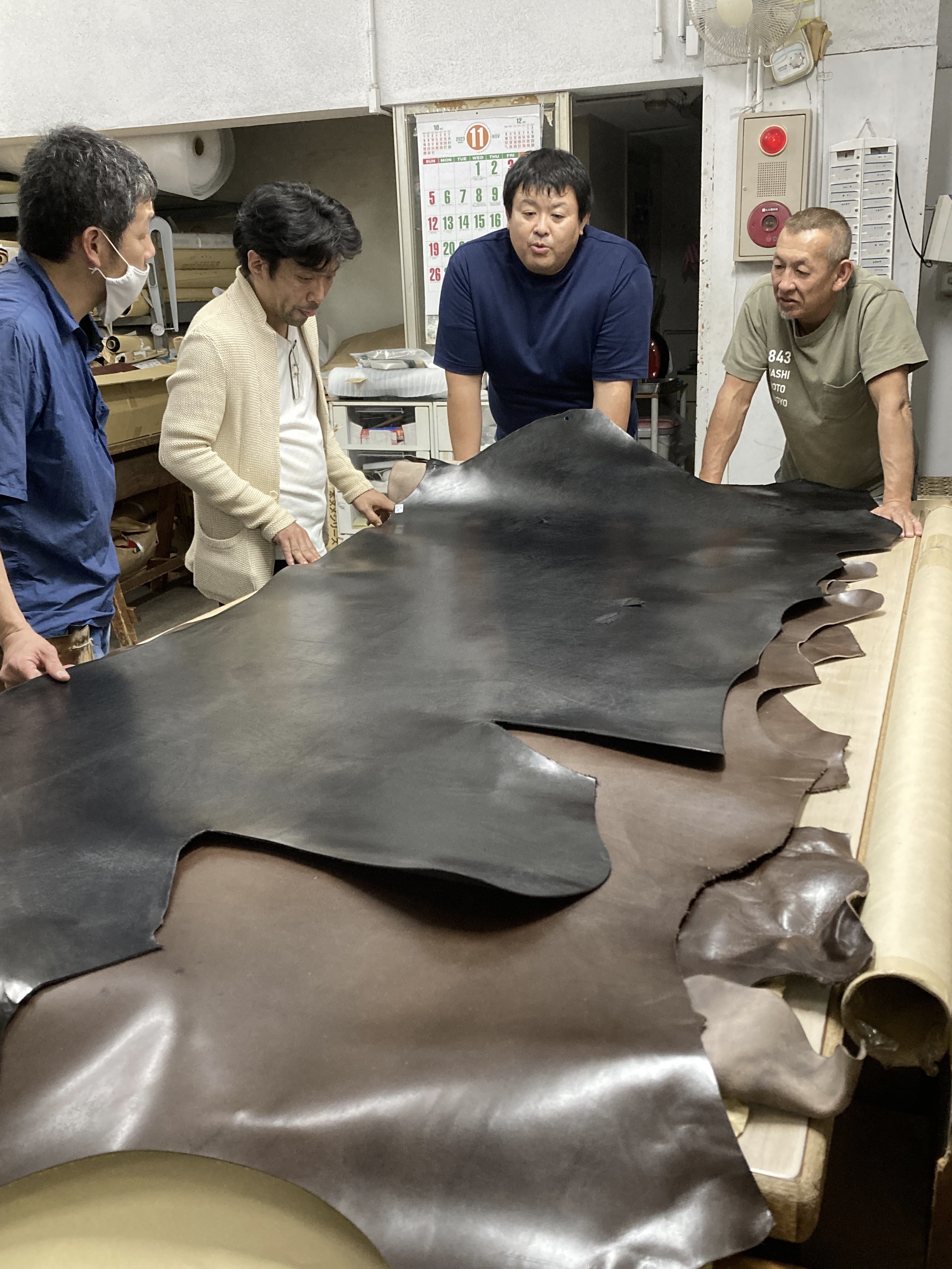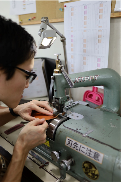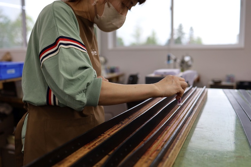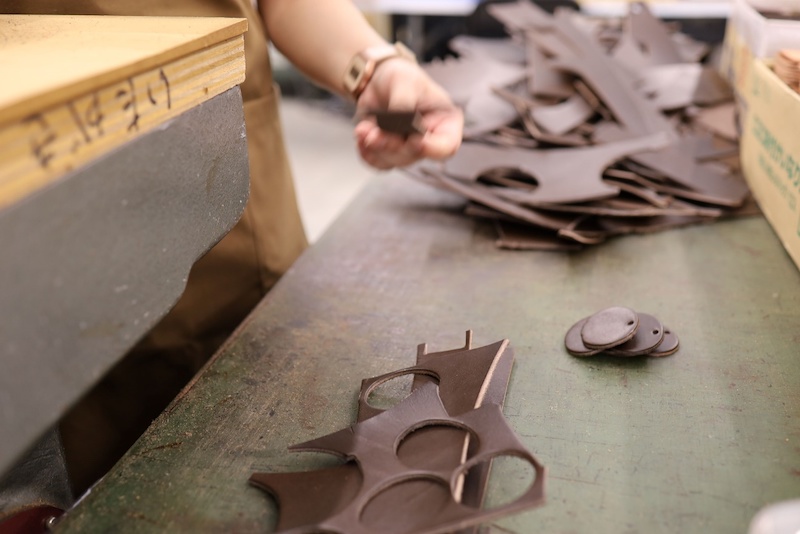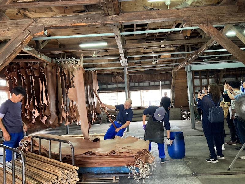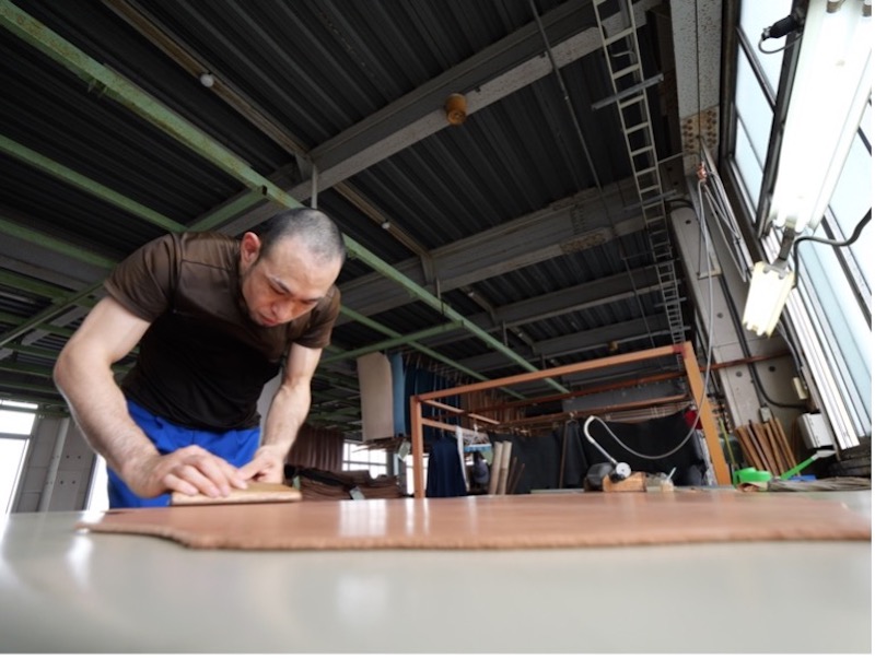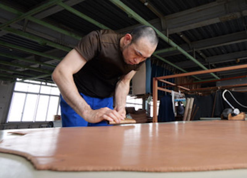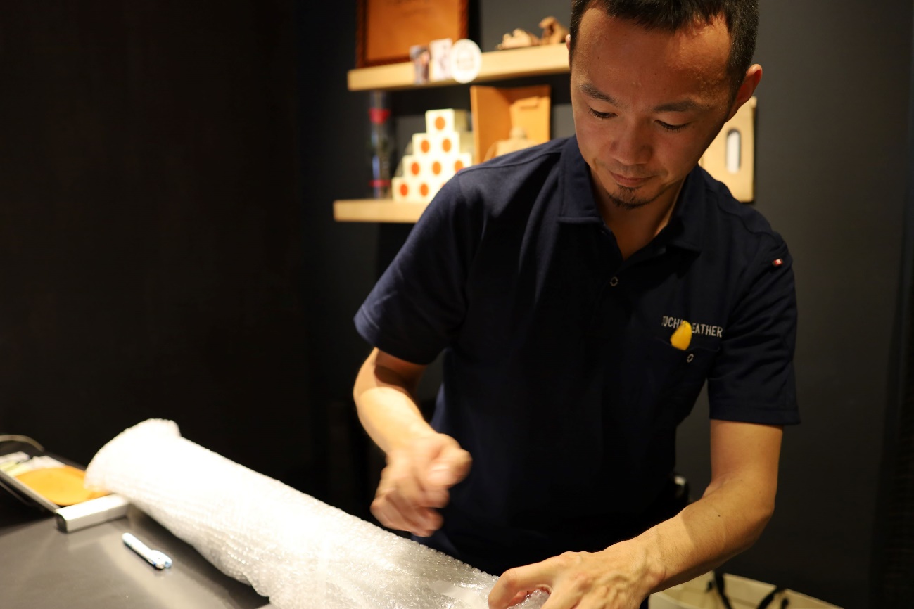 広げたり巻いたり、手慣れた革の扱いを見るのも、