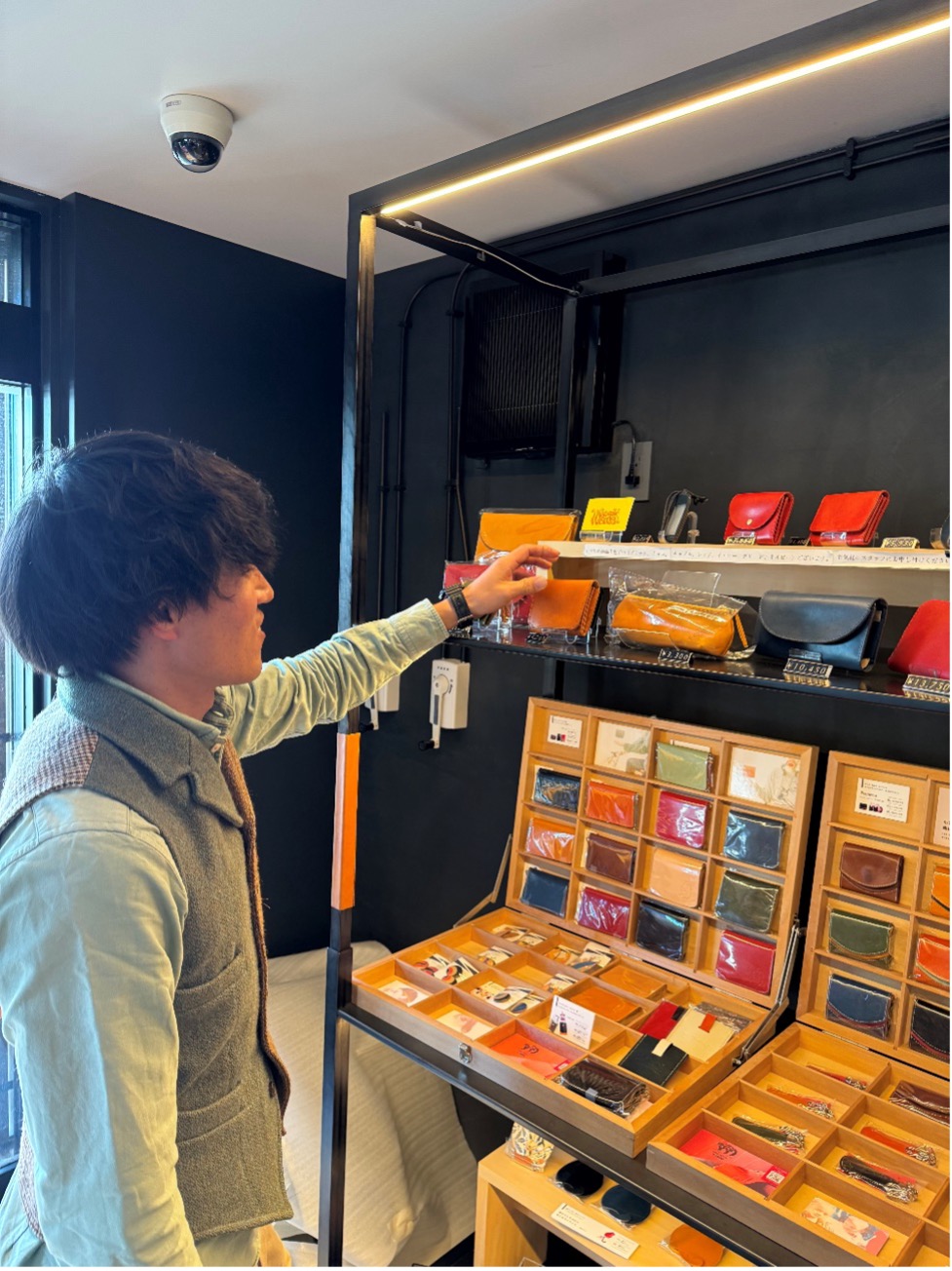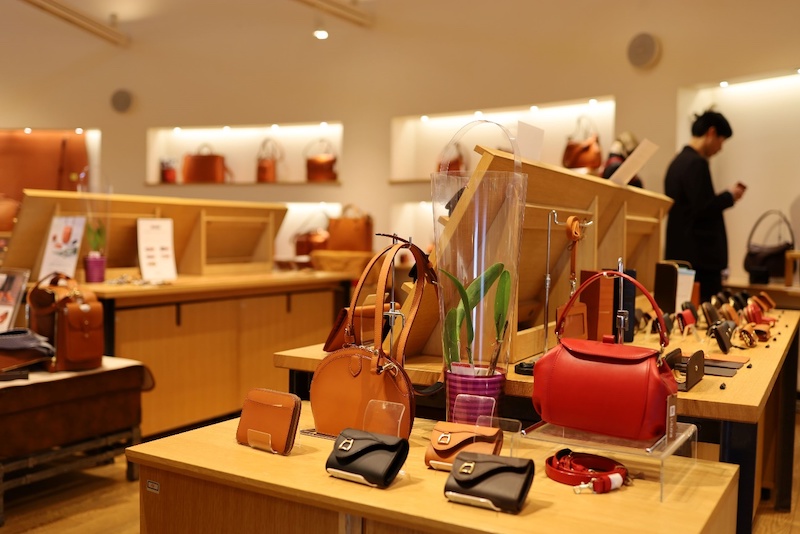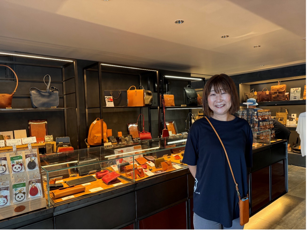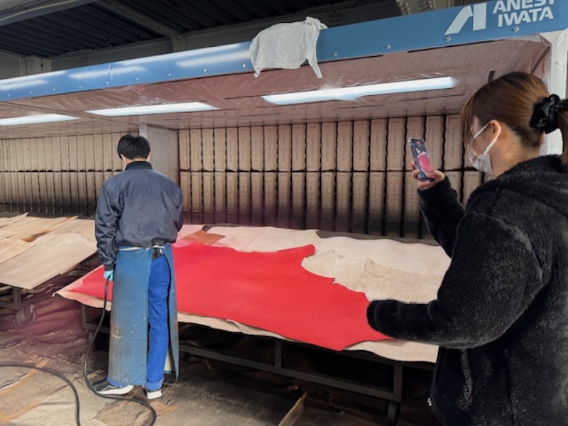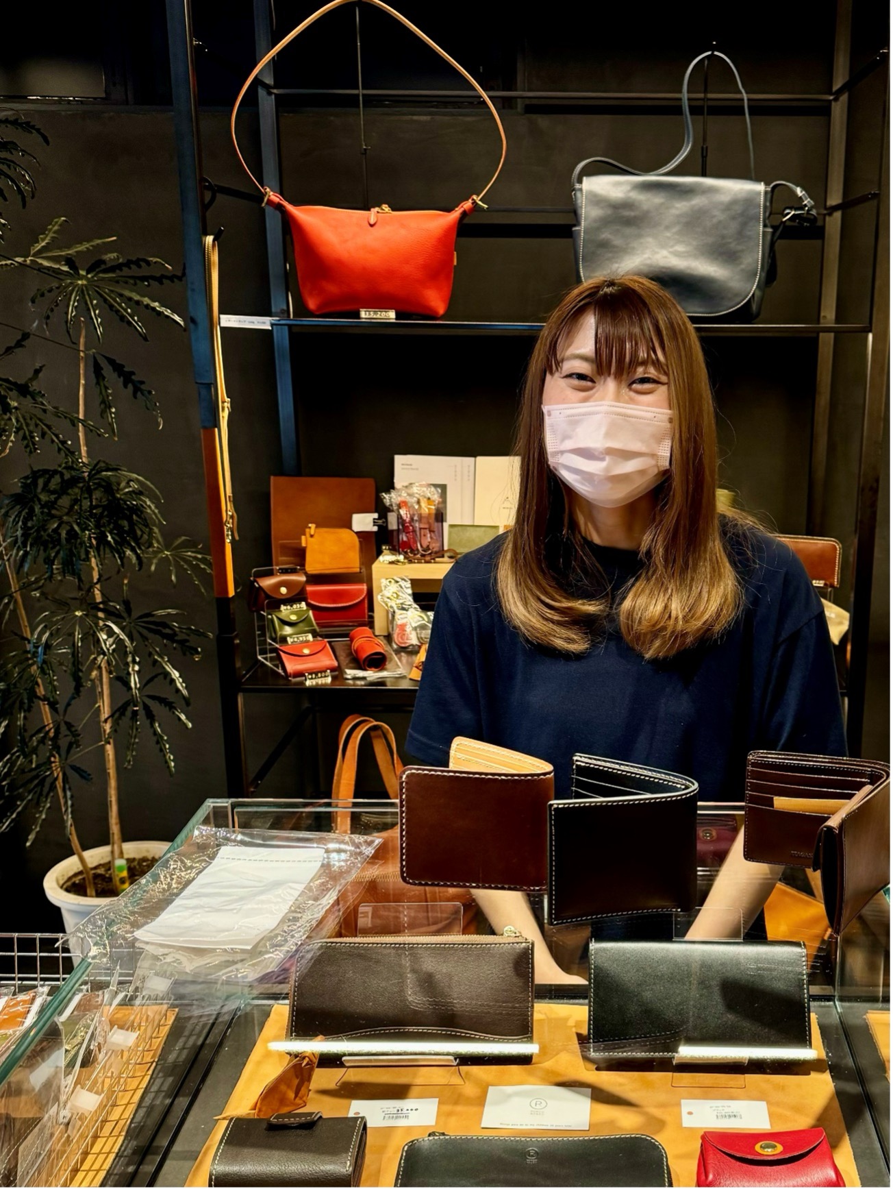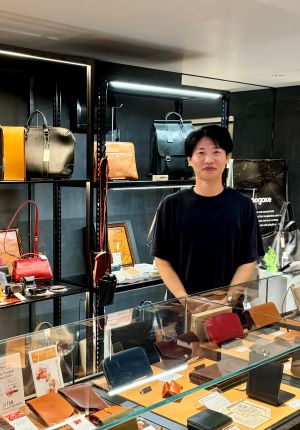 商品の説明から革の特徴まで、実際革作りに携わっているからこその言葉で伝えていくことができますね。この日は同じ課の上野山さんもお店に遊びに来てくれました!